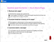 "Special Features" - (An unique title that has appeal for parents considering adopting a pet for the family. After using the application, you may take the puppy quiz and receive The Golden Leash Award).